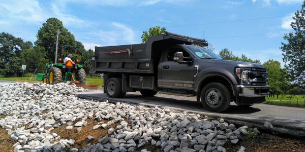 We deliver 6 ton loads of aggregate. Limestone from 49lb. Rip-Rap to Dense grade , Red Bank,Large washer and pea sizes . Red or masonry sands